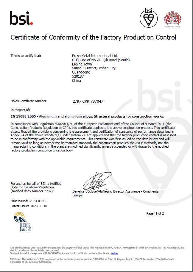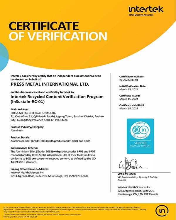 鋁業(yè)管理倡議ASI績(jī)效標(biāo)準(zhǔn)認(rèn)證